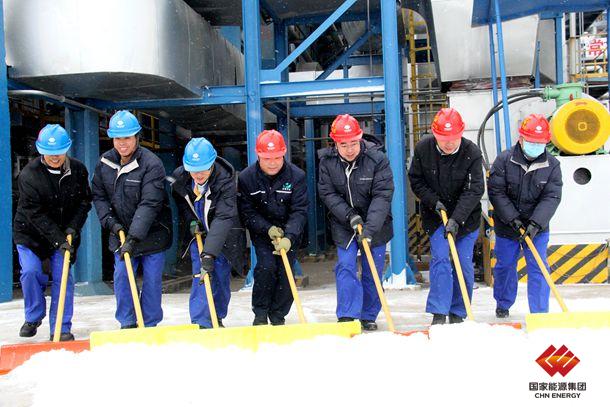 图为煤制油煤液化生产中心员工在顶峰除雪保安全。