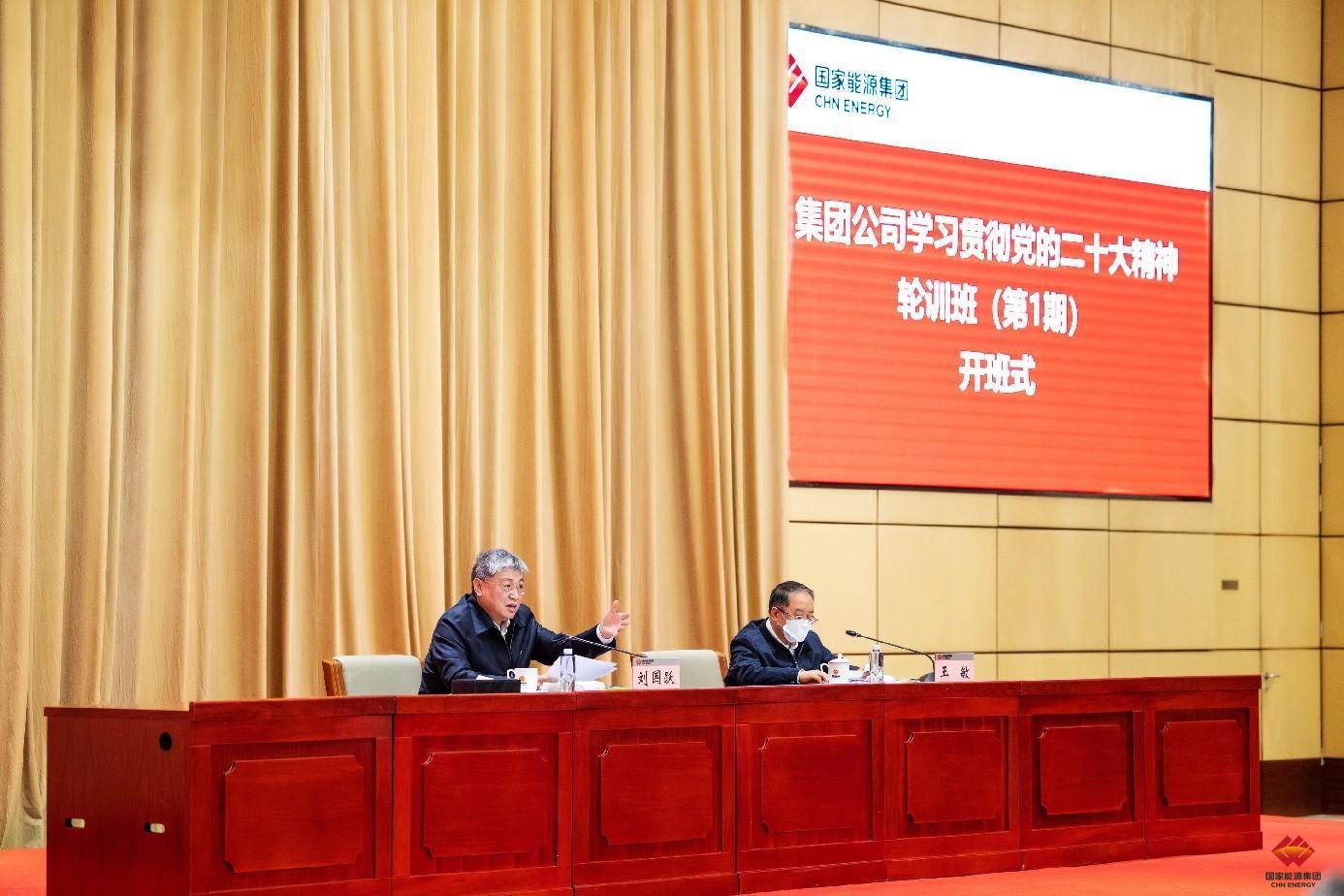 学习贯彻党的二十大精神培训班(第1期)在能源党校开班。集团公司党组书记、董事长刘国跃出席开班式并讲话,党组副书记王敏主持开班式。