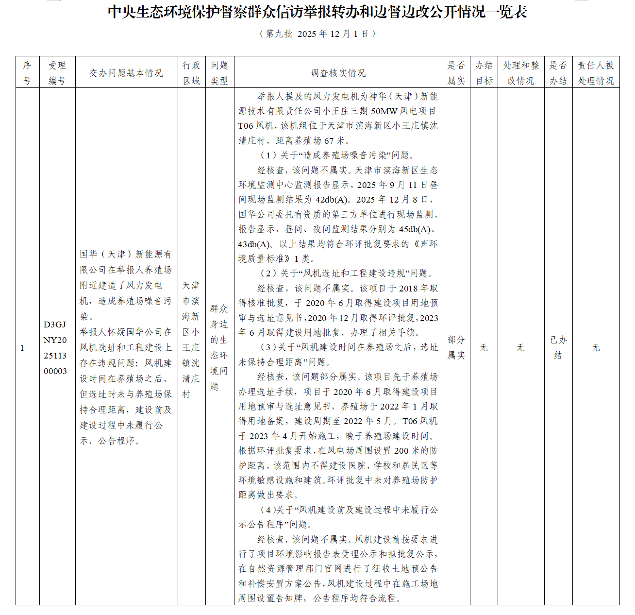 中央生态环境保护督察群众信访举报转办和边督边改公开情况一览表(第九批 2025年12月1日)