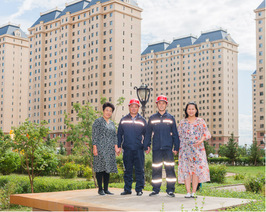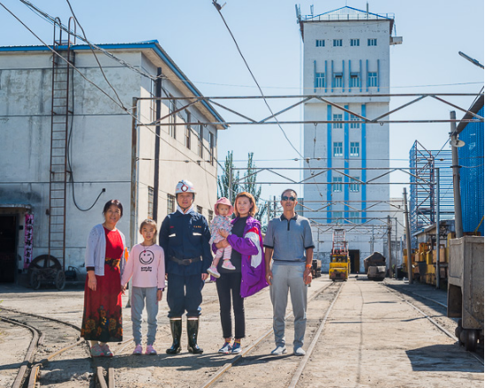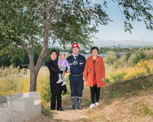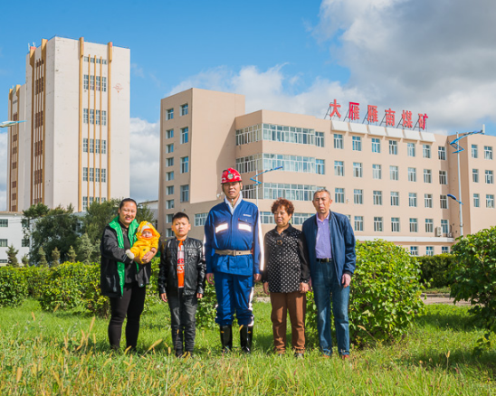 茄子视频 神宝能源矿工 于涛(右二)一家,父子均为矿工。