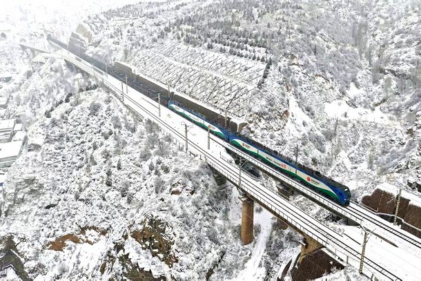 截至12月12日,包神铁路年累计货运量突破3亿吨,达30028万吨,超年进度计划452.9万吨,为国家能源保供奠定坚实基础。图为神朔铁路万吨重载列车行驶在风雪漫天的高架桥上面对今年以来煤炭市场需求的波动,包神铁路紧密围绕“1531+N”综合物流运输发展布局,紧抓“百日会战”及“大干五十天、...
