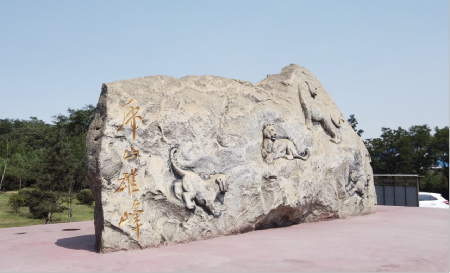 矿区广场硕大的泰山石上镌刻着一段五虎山记,讲述了一个曾有乌龙兴风作浪,祸害百姓,猎户父子五人受仙人指点,化虎降龙、福国利民的故事,由此虎威、虎胆、虎识代代相传,并凝炼成虎山人团结奋斗、勇于奉献、开拓创新、求实进取的精神。