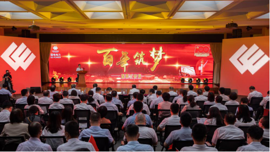 图为国电电力党委采取“现场+云直播”方式开展“百年筑梦”情景式党课