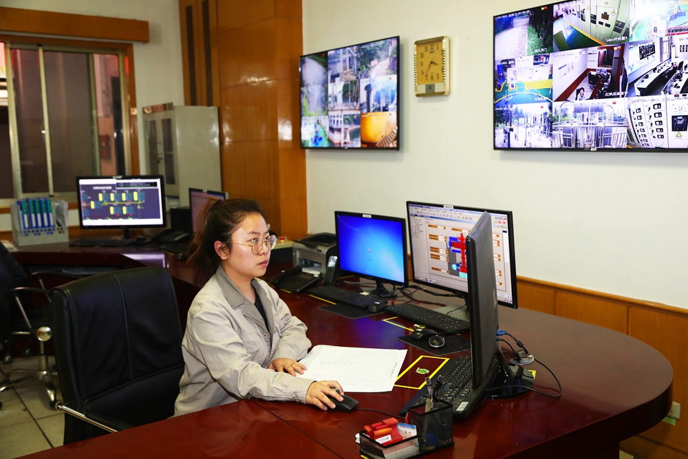 经济运营部调度副值班员在调度室查看设备运行参数